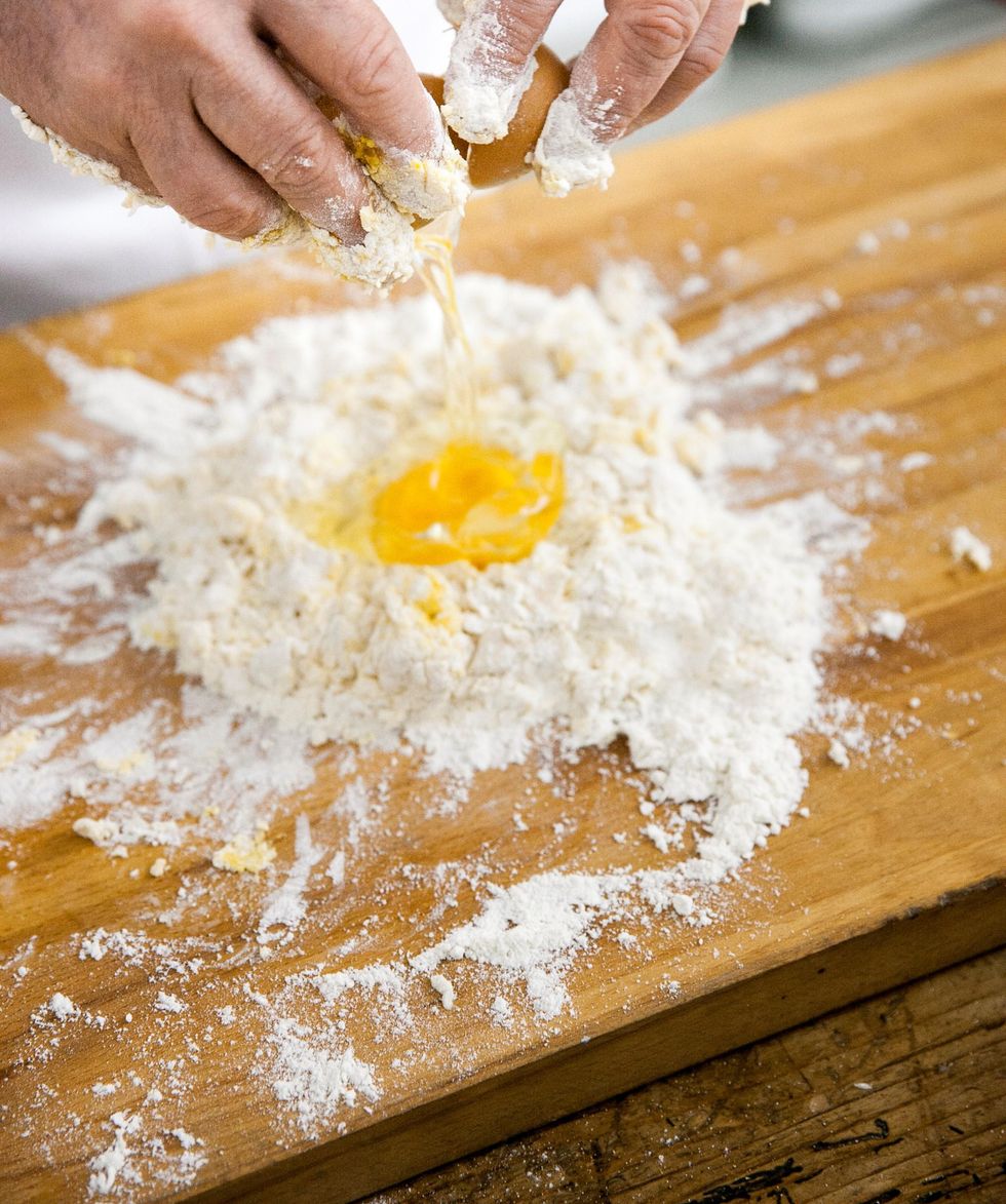 Knead the flour with the eggs until you get a homogeneous dough; from the shape of a ball and let it rest for 30 minutes.