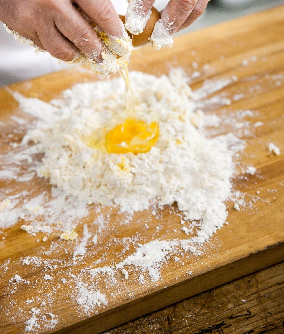 On a pastry board, mix the flour with the salt, the eggs, and the oil. Knead until you obtain a soft but dense dough. Let the dough rest for 30 minutes, covered with a plastic film. Then roll it on a pastry board. The sheet must be really thin.