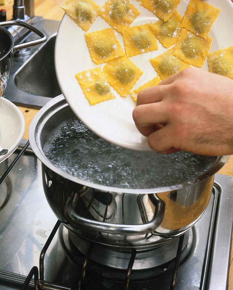 Put the broth on the heat, when it boils, put the agnolotti in the broth. Cook the agnolotti for 5 minutes, then drain them.