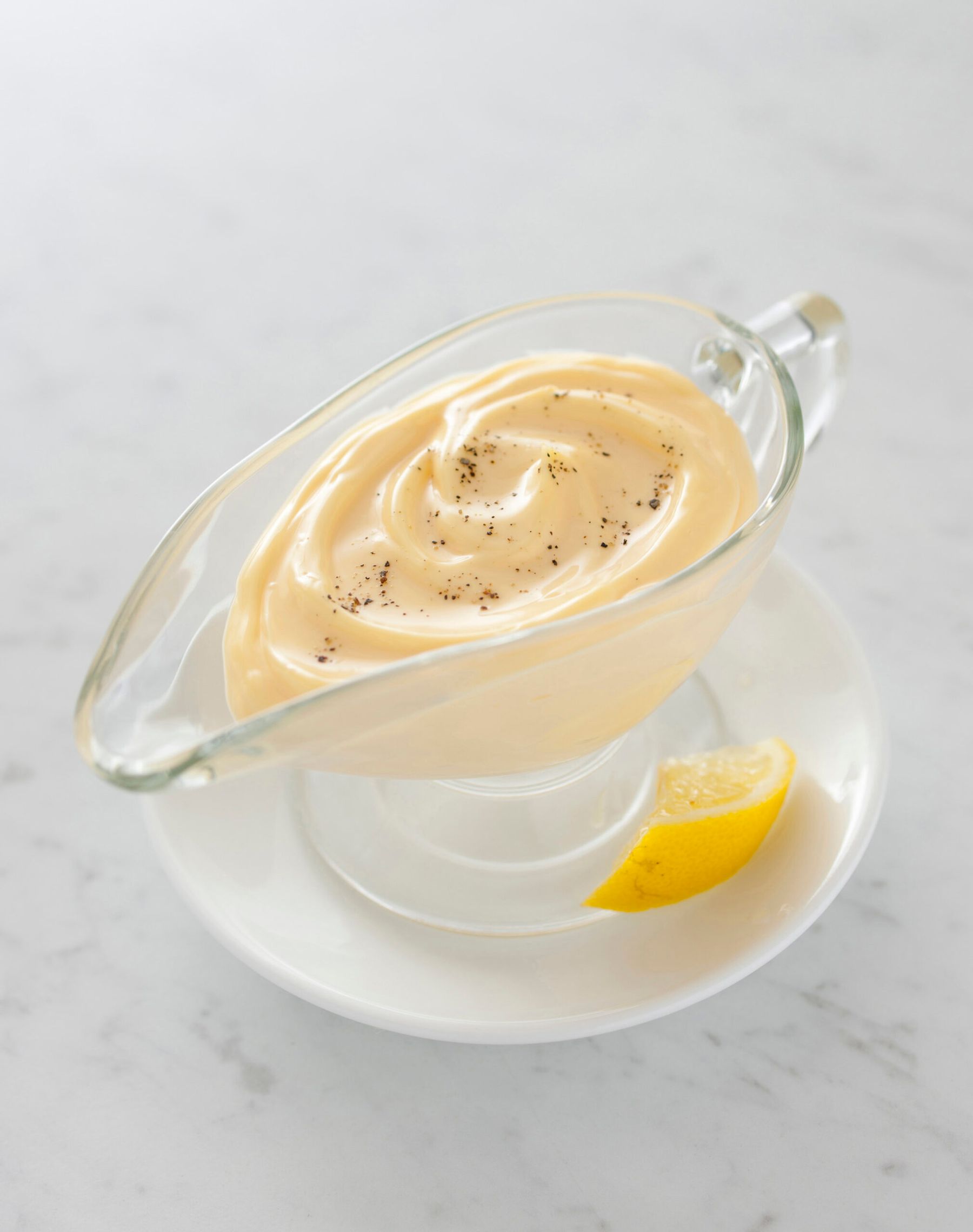 Sauce similar to bechamel, the bastard sauce is prepared with butter, flour and water (instead of milk). At the end of cooking, add an egg yolk and more fresh butter into small pieces, stirring vigorously until they are amalgamated. This sauce is particularly suitable for boiled fish or vegetables.