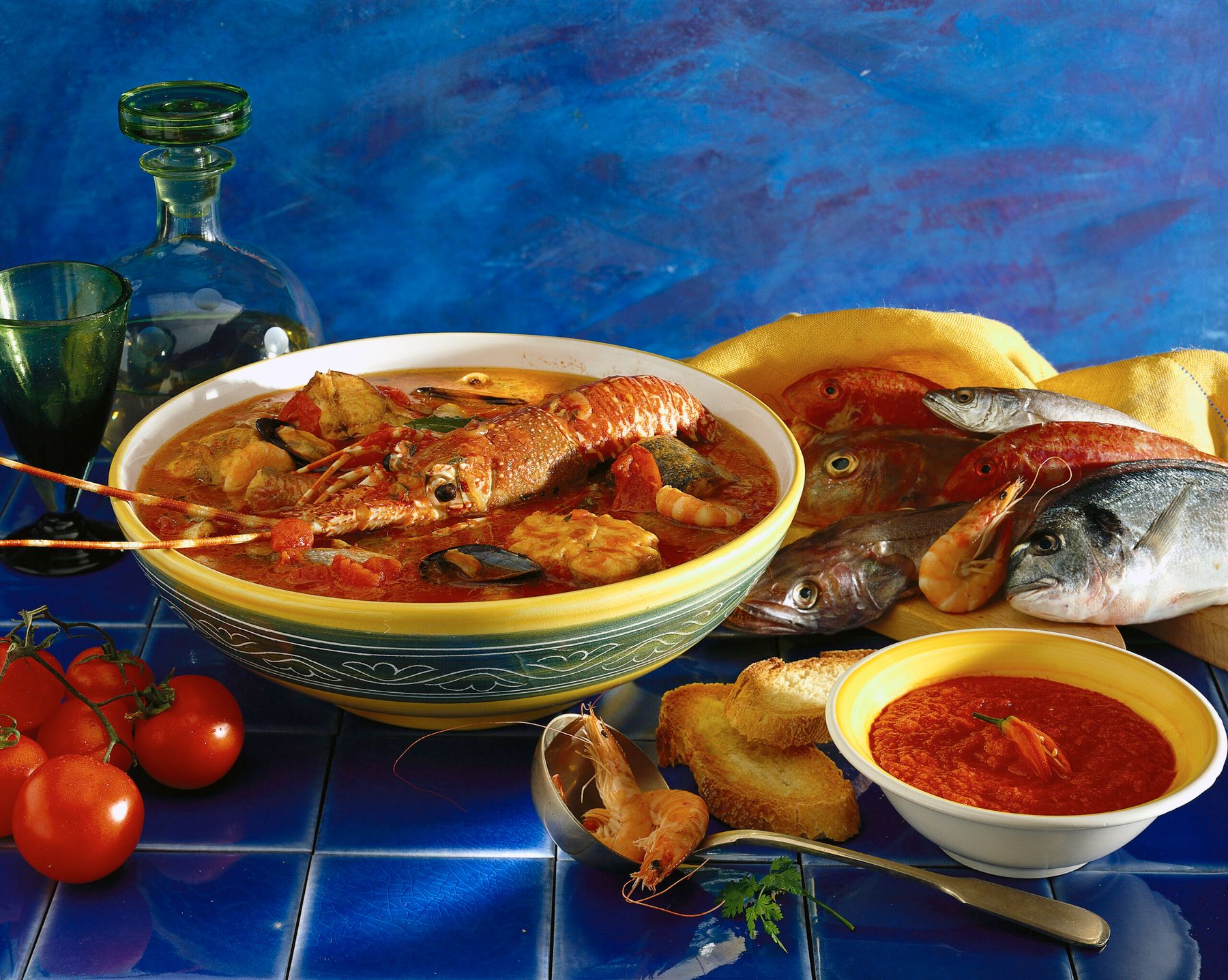 Bouillabaisse is a famous and ancient French fish soup (it was already prepared before the Revolution) typical of Provencal cuisine and, in particular, of Marseille. The term - which in the Provençal language is masculine (bouiabaisso), derives from the fusion of the verbs "bouillir" (to boil) and "abaisser" (to lower) - indicates a very rapid cooking system; in fact, after a quick boil, the heat must be lowered to the minimum and cooking must continue for only a few minutes.