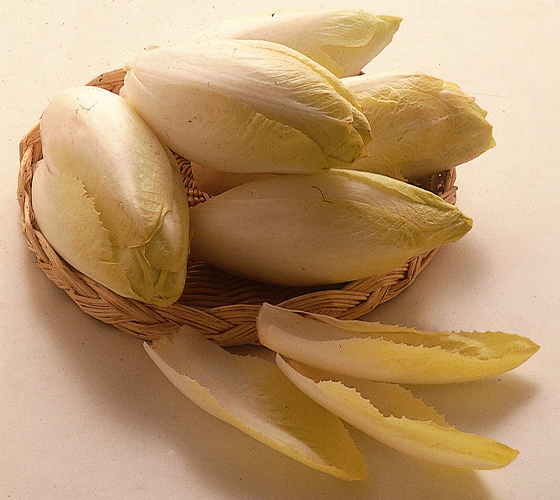 In 1845, the head gardener of the Brussels Botanical Garden discovered that some chicory roots had sprouted in the darkness of the cellar of his home, creating a particularly tender and delicate product with a very light color. From that moment and, for over twenty years, through a series of experiments, he came to produce what we all know today: delicate white leaves, slightly yellow-green at the tip, closely superimposed on each other.