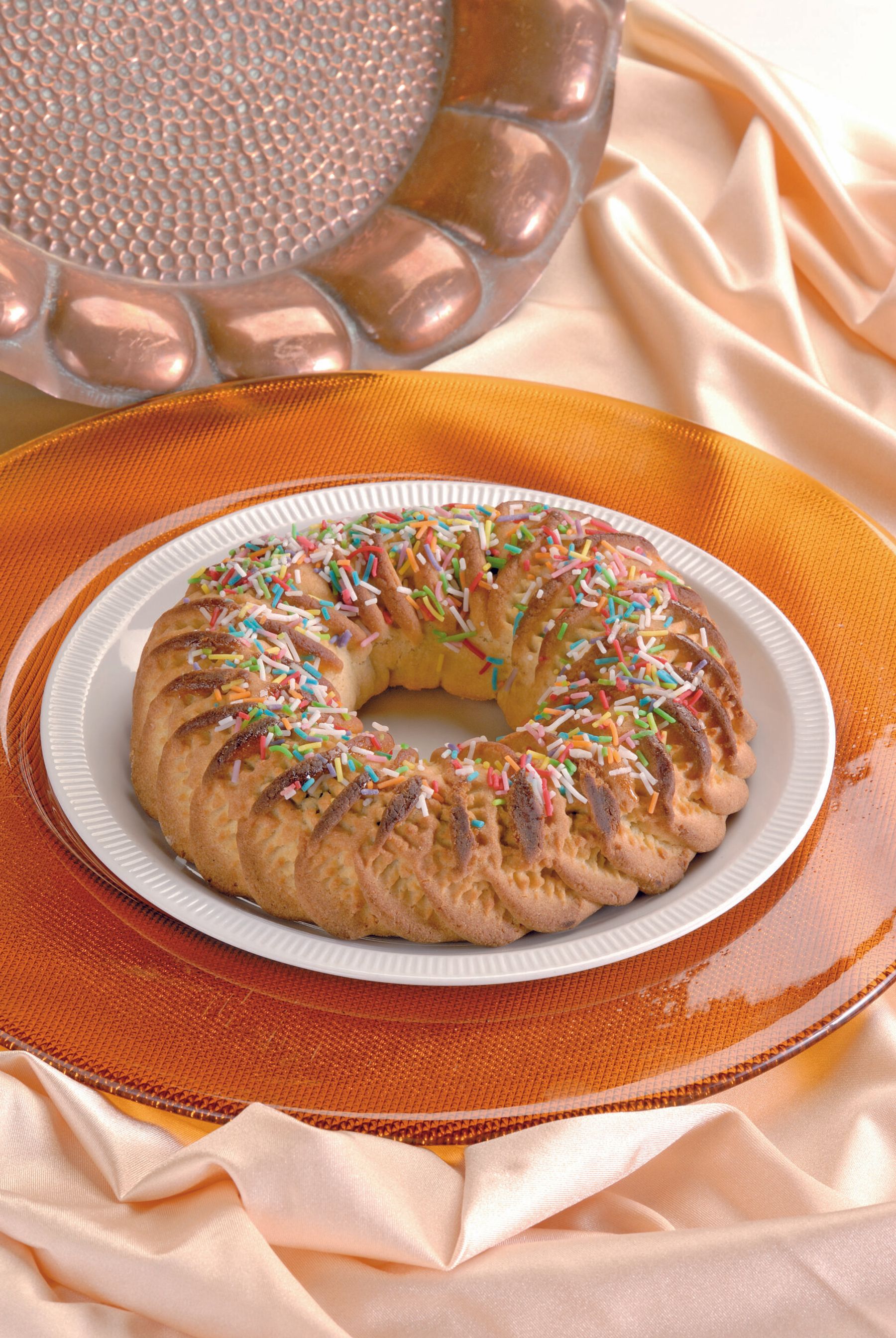Buccellato is a typical Tuscan dessert made with leavened dough and sometimes enriched with candied fruit. It is shaped like a donut (the diameter can even reach 3 feet) and, in the Lucca countryside, it was once a tradition to give it to children on the occasion of their Confirmation. There is also a type of Sicilian buccellato, without candied fruit.