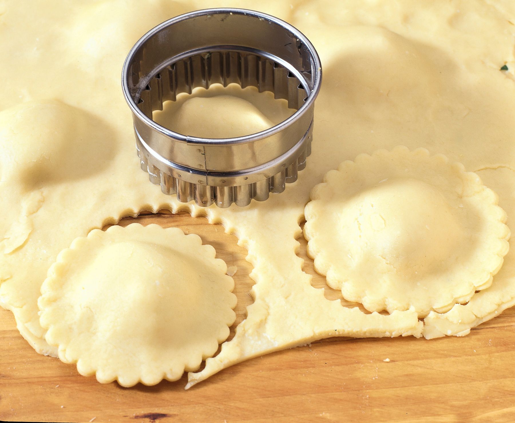 Calcione is a regional term of Marche and Abruzzo with which two types of preparations are indicated: sweet cheese ravioli, made with shortcrust pastry or bread dough, then stuffed with a filling of pecorino or ricotta, sugar, eggs, lemon zest and finally cooked in the oven. The second preparation is savory ravioli with a filling of ham, provolone, ricotta, parsley and eggs, then fried in vegetable oil.