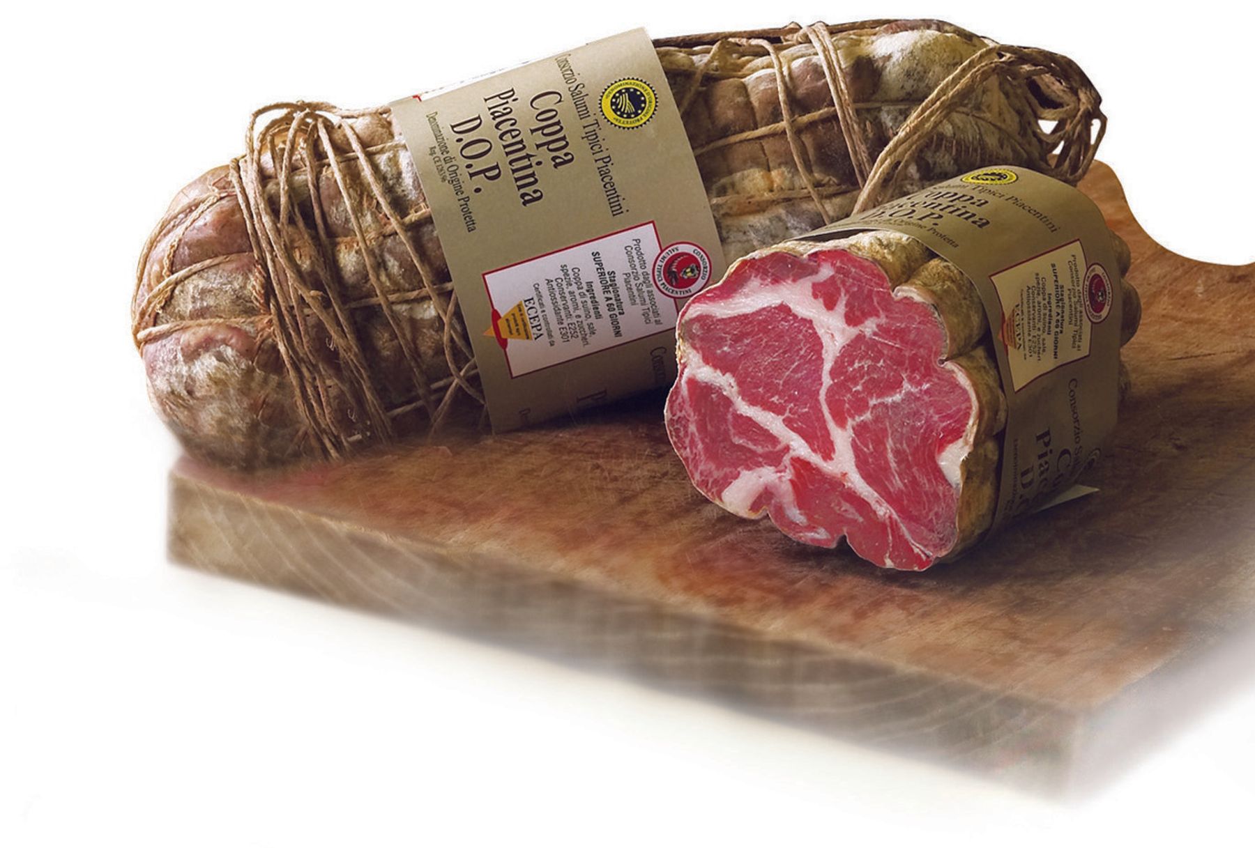 Coppa Piacentina is a cylindrical cured meat weighing more than 1.5 kg. It is obtained from the neck muscles of pigs (two coppa are obtained from each pig) which come from two Italian regions (Emilia Romagna and Lombardy); the production area, on the other hand, according to the PDO specification is the territory of the province of Piacenza.