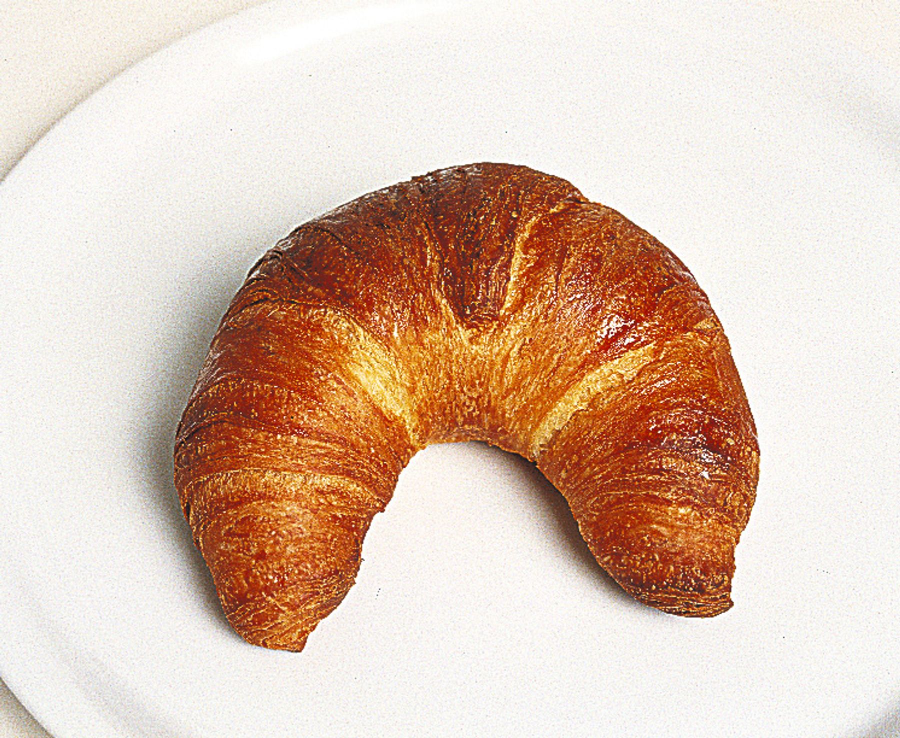 Croissant is a French word that defines a kind of sweet, soft and puffy bun made with leavened dough, more or less "fine" depending on the proportion of butter and eggs used. The dough, prepared with brewer's yeast, must rise in a rather warm environment (about 82°F) and be manipulated for a long time in order to acquire its classic lightness. Then it is placed on the greased oven plate or in special round molds that must be filled only halfway so that, during cooking, the dough can swell without protruding from the mold. At the center of the croissant, before cooking, a ball of the dough is inserted which, in the end, will constitute the classic "hat" of the croissant.