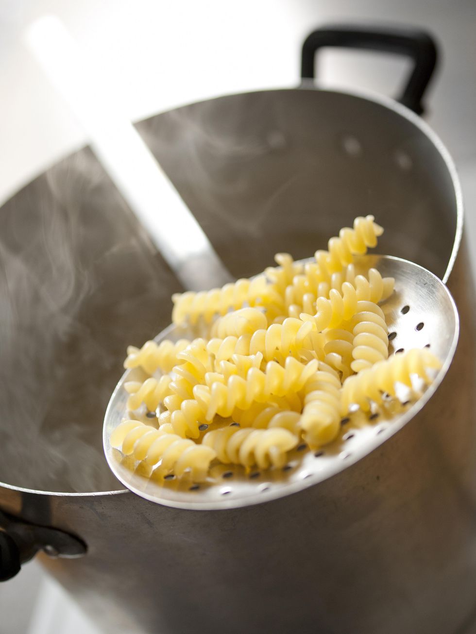Cook the pasta in plenty of boiling salted water, drain when it's still a bit underdone and let it cool down.