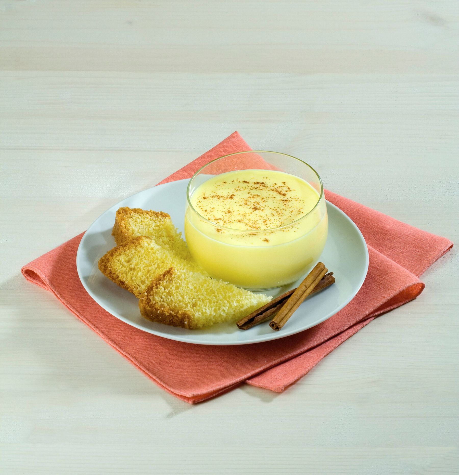 - Beat 4 egg yolks with 100 g of sugar until obtaining a light and fluffy mixture is obtained. Add, 2 heaped tablespoons of flour, passing them through a colander. Dilute the mixture in half a liter of cold milk, stirring constantly and pouring the milk slowly. Flavour with a lemon zest or vanilla sachet.