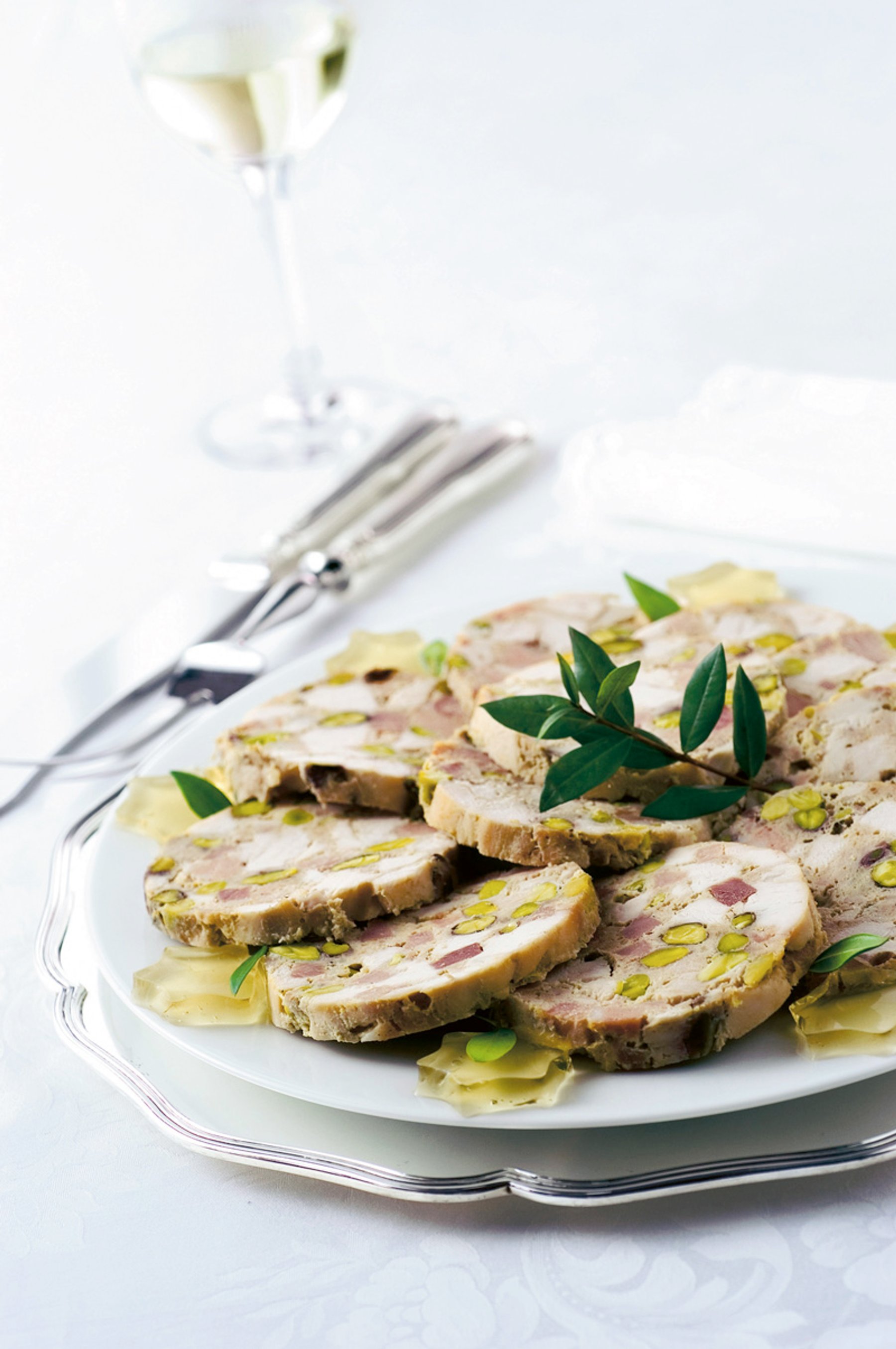 Galantine is a cold preparation with a mostly rounded shape, made of tiny meat cubes (either of veal or chicken), ham, tongue and truffles, mixed with a filling and enclosed in a chicken or turkey skin wrap, or in a net of calf. Everything is then boiled and served with jelly.