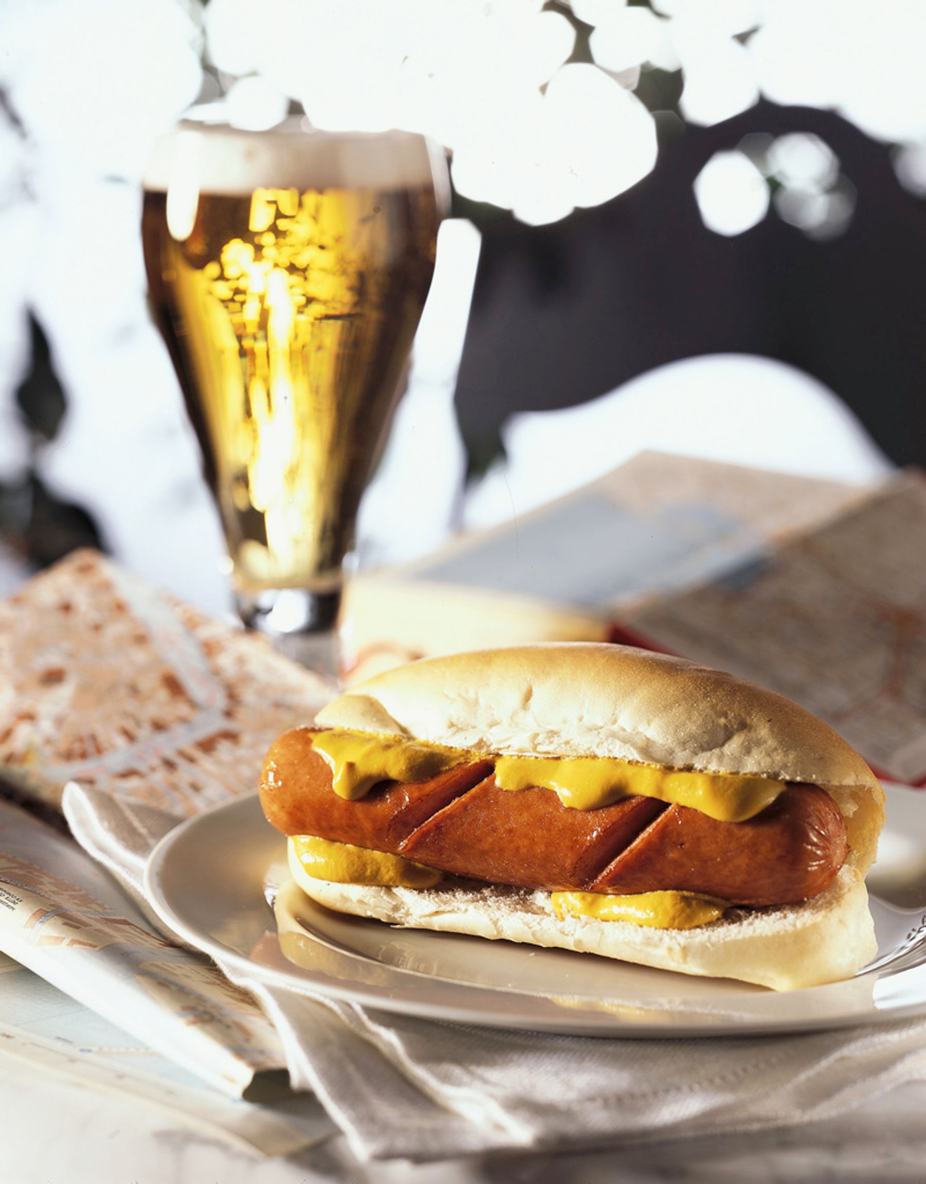 It indicates a long and thin sandwich with a hot sausage and mustard. Hot dogs are extremely popoular in the United States and are in fact widely sold in snack bars and small kiosks.