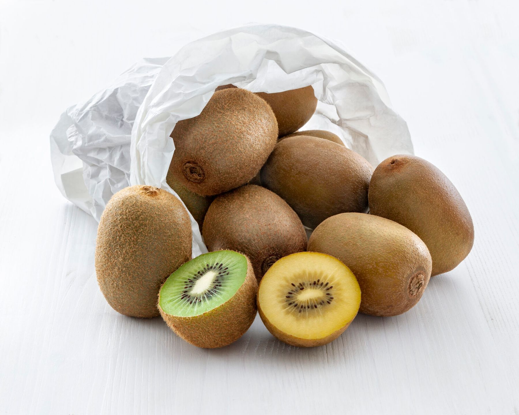A lot of well-being in a very light fruit: 100 grams of kiwi (the equivalent of a fruit) contain only 44 calories. That's why kiwi is perfect in low-calorie diets and whenever you are looking for a tasty but low-calorie food.