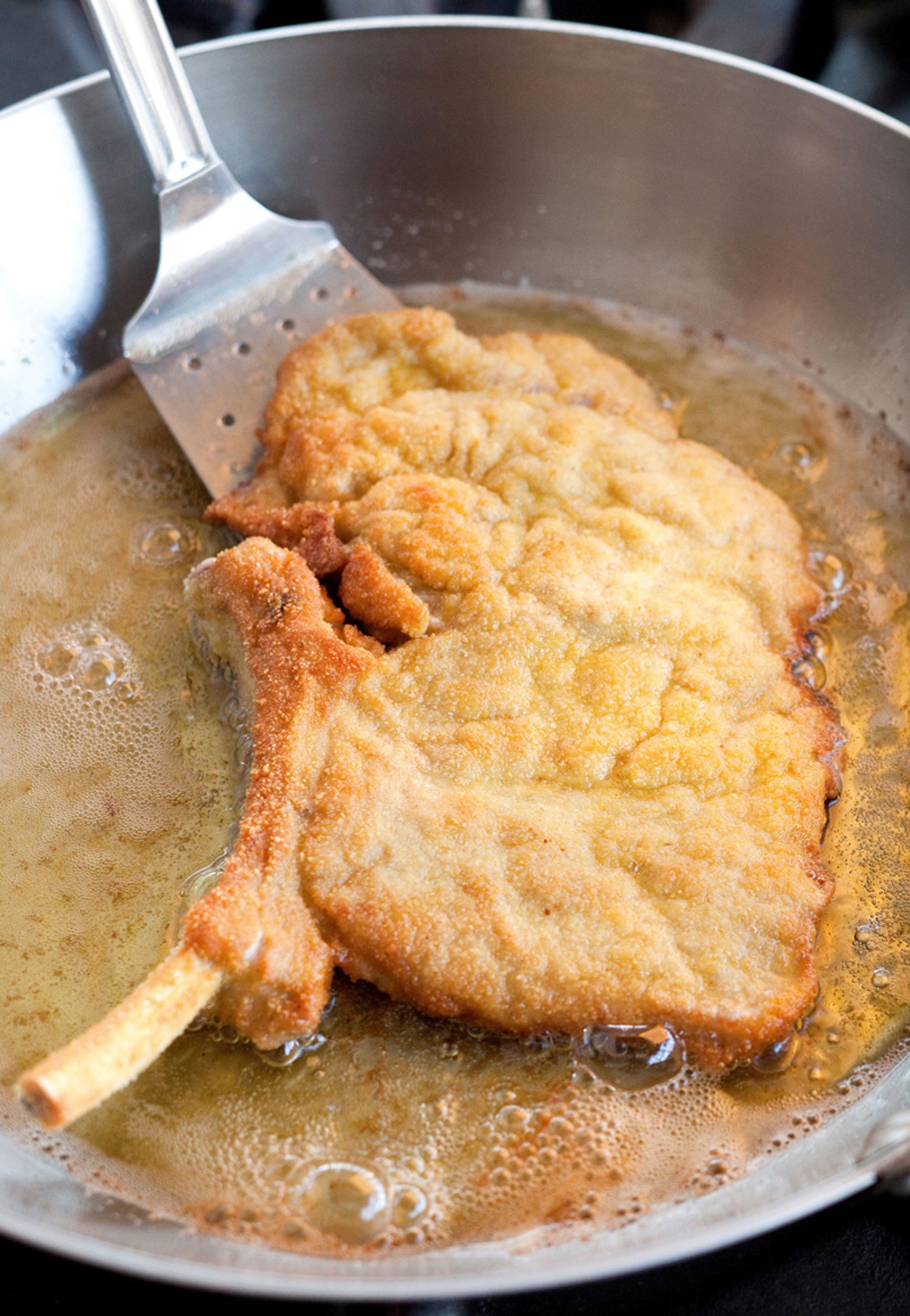 The cutlet is first floured, then passed in the beaten egg (sometimes with a tablespoon of olive oil in order to obtain a crunchier crust) and finally breaded in breadcrumbs. Then, it must be fried strictly in hazelnut butter, after it starts bubbling.