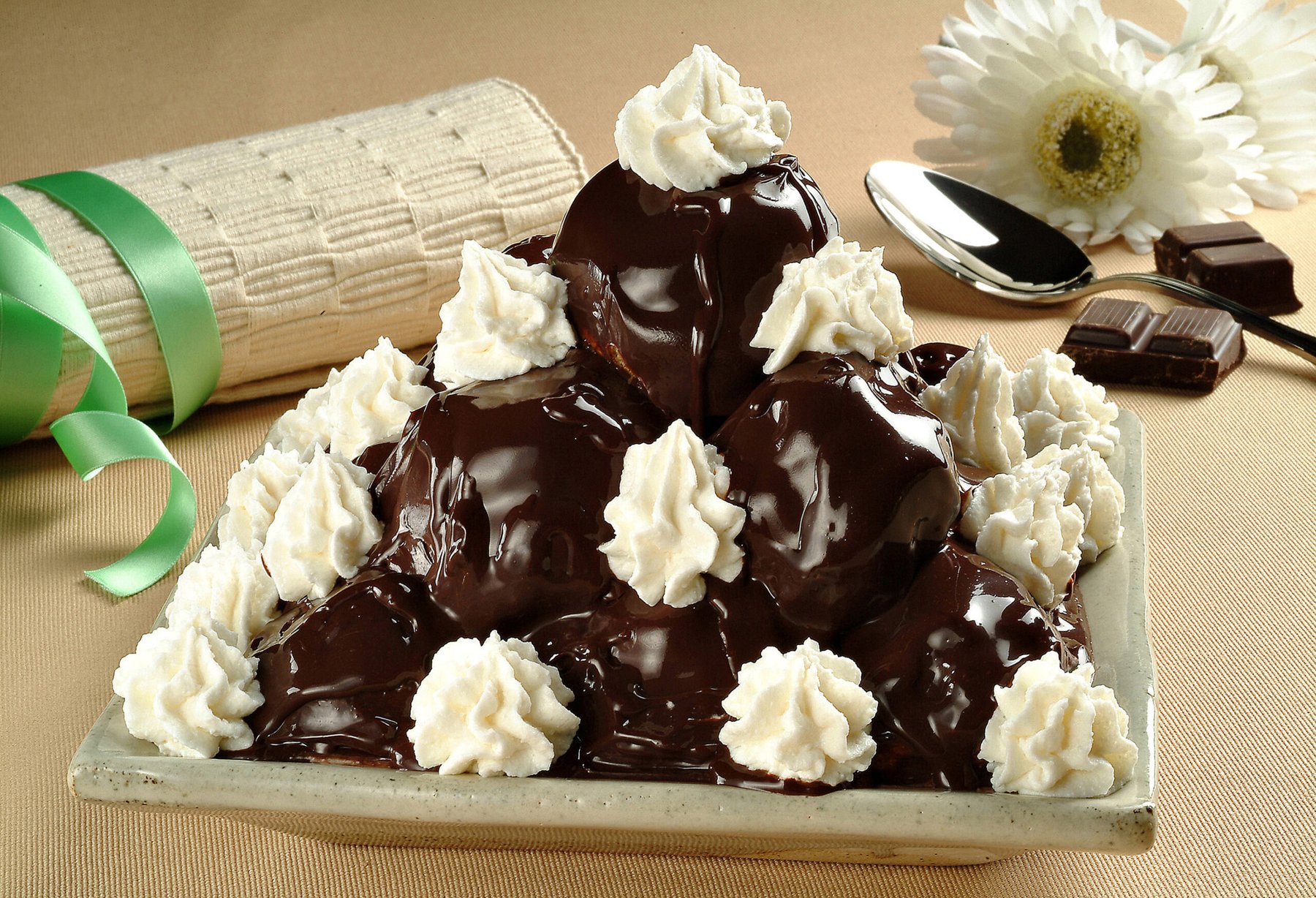 On the other hand, the sweet profiterole is filled with custard or whipped cream, in this case it is used to prepare the «croquembouche» and the Saint-Honoré. "Profiteroles" in the plural indicates a dessert made of these cream puffs, mounted in a pyramid and covered with chocolate.
