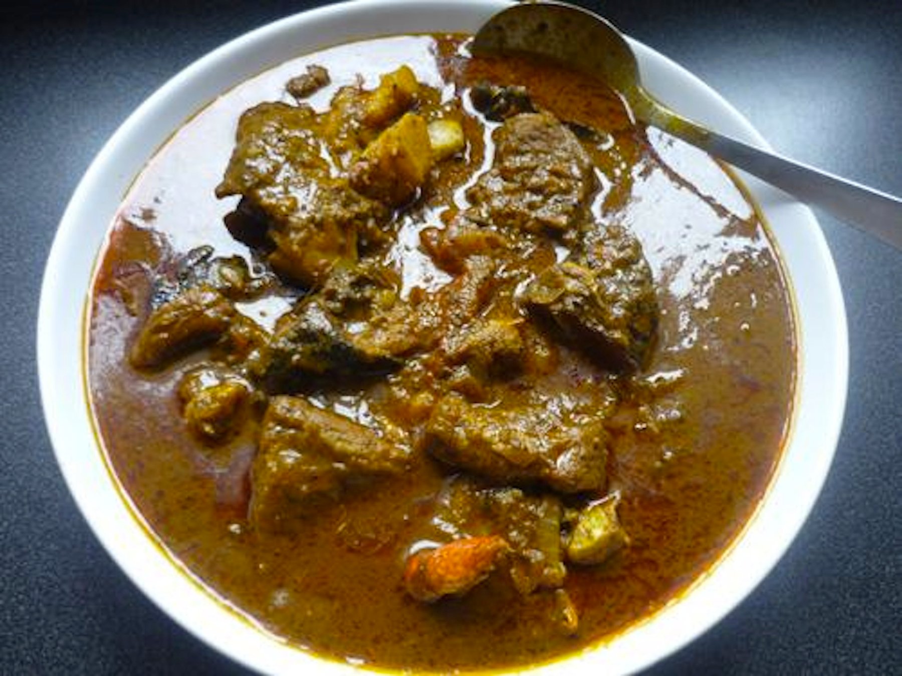 It is cooked together with beef or mutton, flavored with dried shrimp powder, smoked fish, crabs or snails