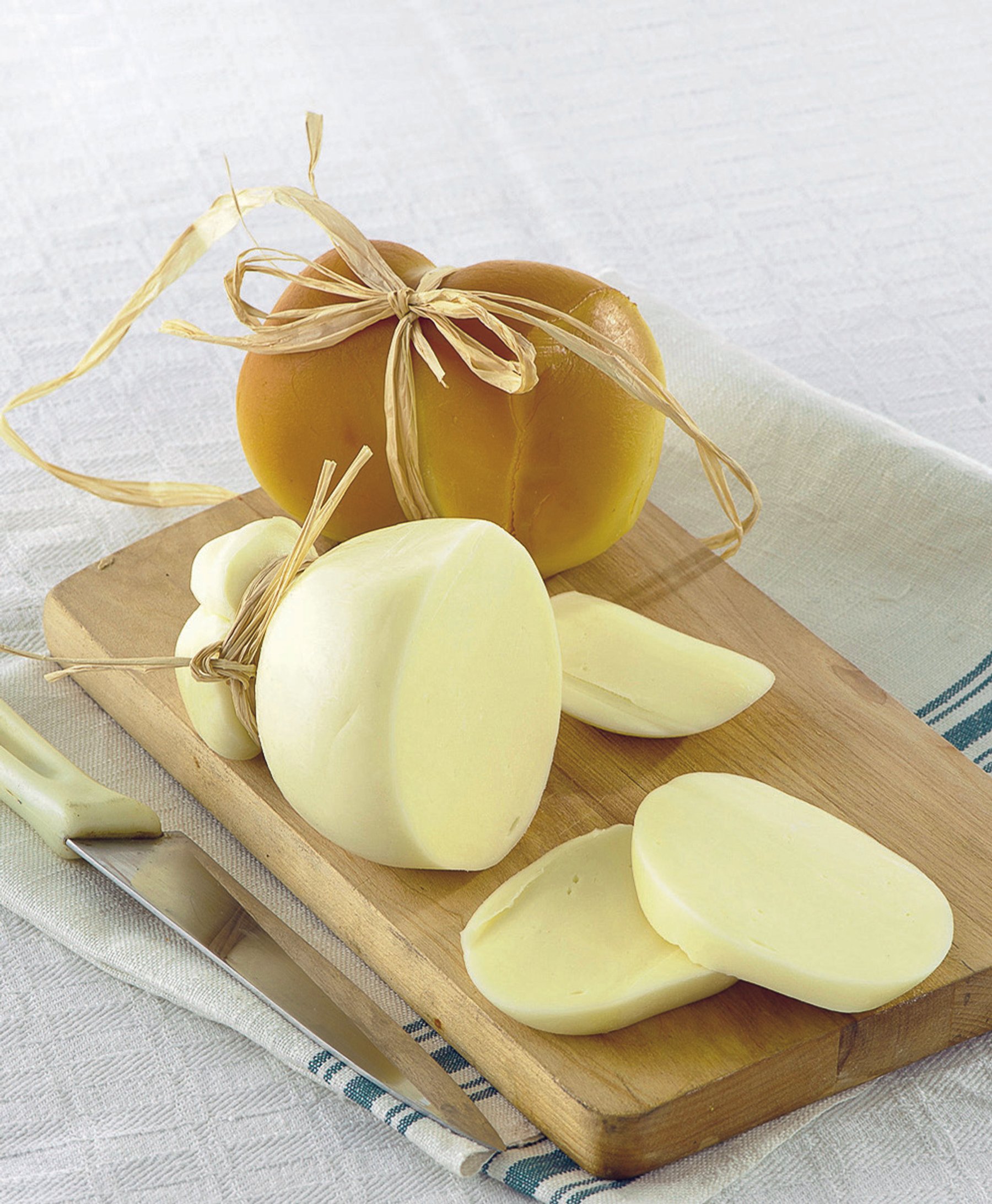 The scamorza can be both fresh (in this case it has a thin yellow rind, uniform white paste with few holes and a typical elastic texture) or smoked (with brown compact paste). The fresh one tastes sweet and delicate, with aromatic traces of milk, on the other hand the smoked one has a more distinct taste. Excellent in salads or skewers, scamorza cheese, which can be spun, is ideal in the cooking of oven preparations that require a light gratin. Another way to eat it is in slices of 2- 3 cm cooked on a plate or grilled, accompanied by chestnut honey.