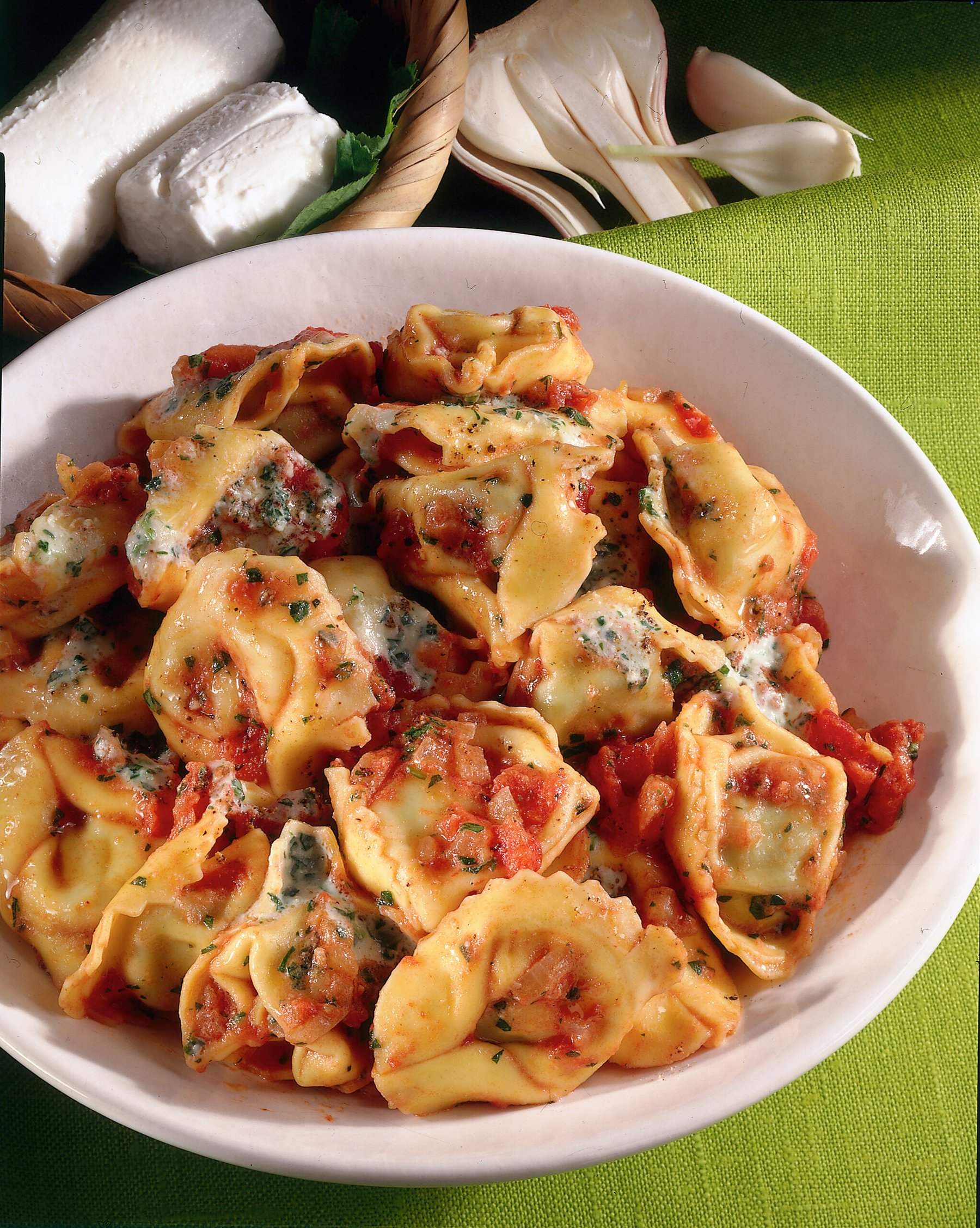 Tortelloni are a stuffed pasta with a larger format than tortelli. The most typical tortelloni are the lean ones stuffed with a mixture of ricotta, beets or spinach, eggs, grated parmesan and seasoned with melted butter and sage.