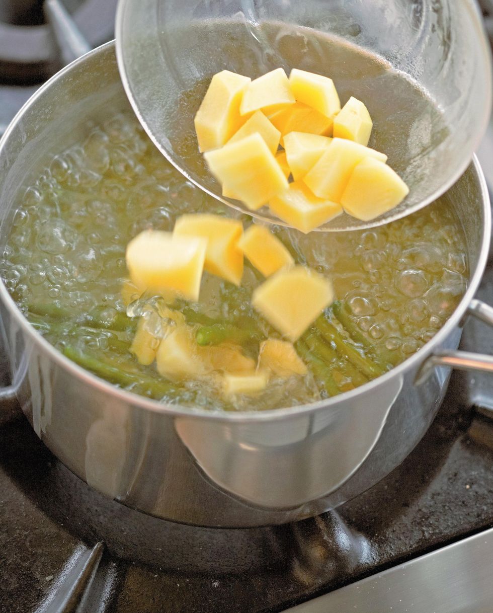 Bring to a boil in a large pot with abundant salted water, add the green beans, cook for about ten minutes, then add the potatoes; as soon as you are softened add the trofie pasta; stir and continue cooking for another 6-7 minutes.