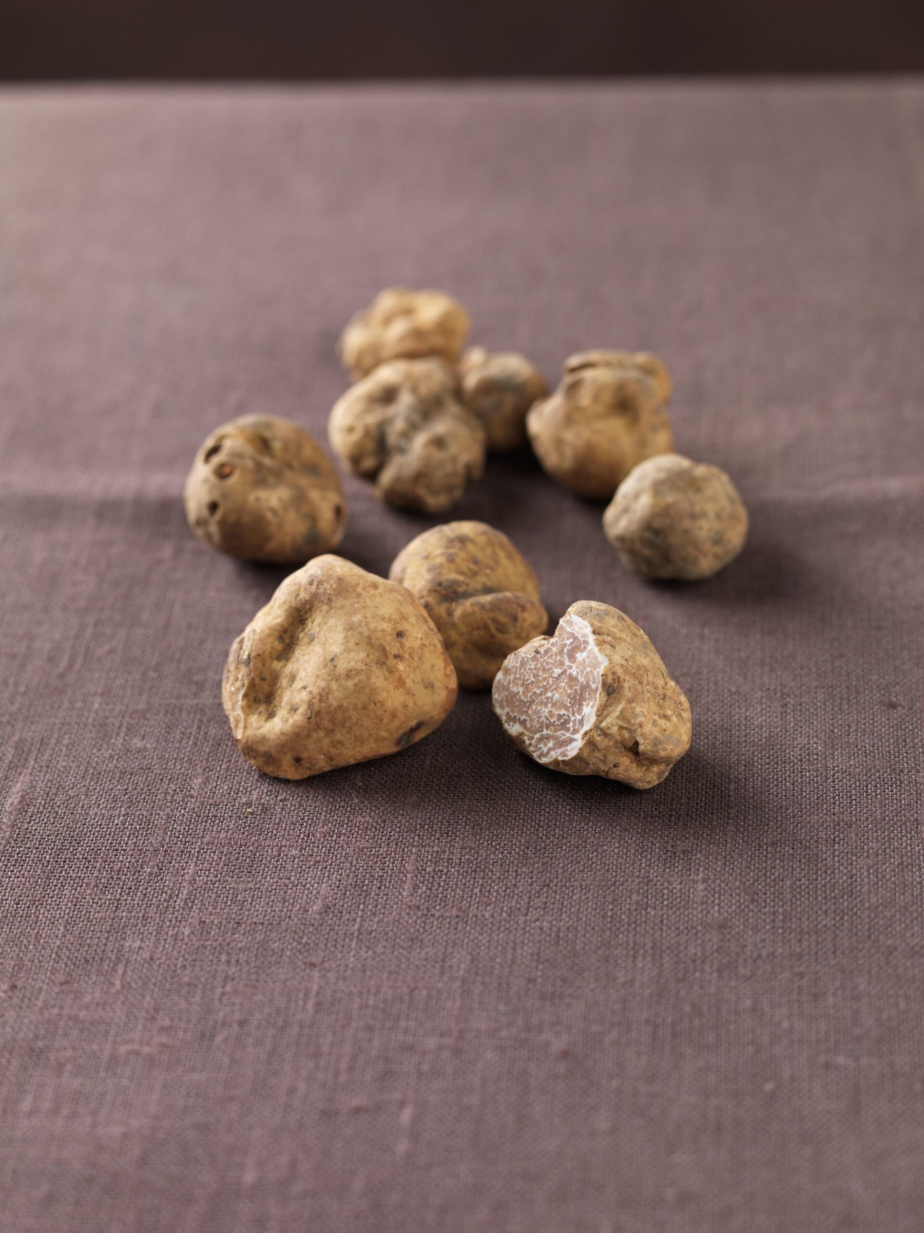The white truffle is born spontaneously in some areas of northern and central Italy (among the most suitable, Alba, in Piedmont, and Acqualagna, in the Marche), where it is harvested until the end of December. Upon purchase, the important thing is that it is fragrant, firm and at the right point of ripeness, recognizable by the internal color (from milky white to brownish) and by the white, well-defined veins. The white truffle should be tasted raw, on fresh pasta, eggs, raw meat.