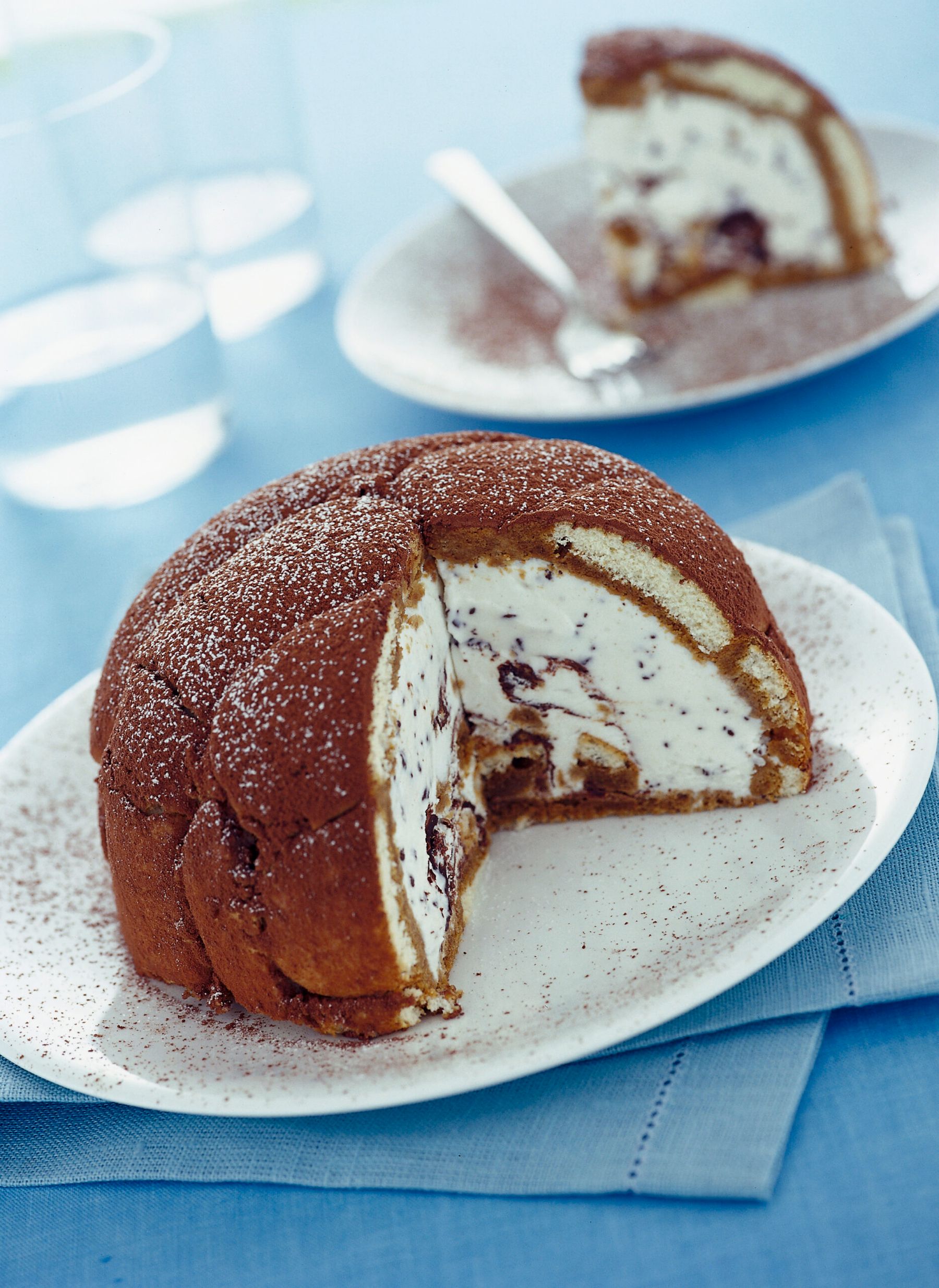Zuccotto is a semifreddo dessert of Tuscan origin, with a hemispherical shape. The external part is made with sliced sponge cake with which the walls of the domed mold in which the semifreddo is prepared are covered, while the interior is based on custard, whipped cream, candied fruit, and chocolate.